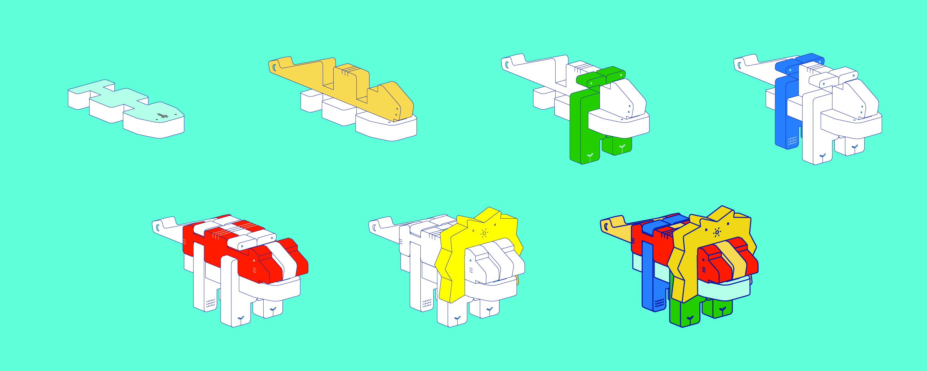 여기저기 출판사에서는 이야기책을 읽으며 키트의 조각조각을 조립해 나가며 형상을 완성시키는 새로운 방식의 출판 프로젝트를 기획했습니다. 이야기책은 각 조각의 캐릭터를 설명하고, 이야기 속 조각 퍼즐들이 모여서 3차원의 형상을 이룰 수 있게 제작 됩니다.
