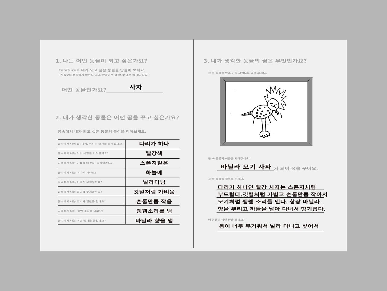 TONITURE를 활용할 수 있는 이야기책과 활동지를 개발했습니다.