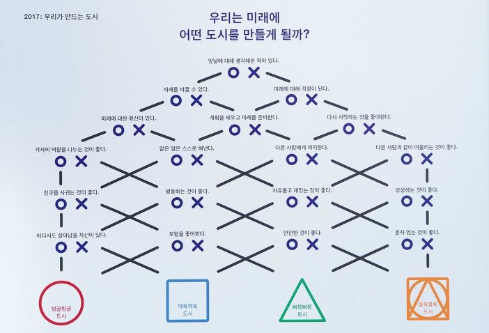 토니처는 백남준 아트센터 '당신이 시작하라' 전시 연계 프로그램으로 전시 되어진 관람객 참여형 작품입니다. ‘우리는 어떤 도시를 만들게 될까?’라는 생각 속에 질문을 던지고 OX로 따라가다 보면 ‘빙글빙글 도시’, ‘삐죽삐죽 도시’, ‘깍둑깍둑 도시’, ‘올록볼록 도시’ 등 4개의 도시가 나옵니다. 관람객은 자신이 선택한 도시로 가서 앞 사람이 만들어 놓은 작품을 바꾸어 자신의 도시를 만드는 것으로 작품을 완성합니다.