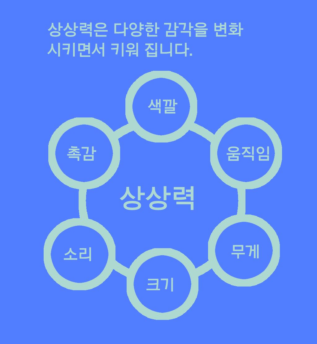 이 프로젝트는 아이들이 상상 속의 이미지를 자신에게 유사한 실제 크기로 만드는 과정을 통해서 사물과 공간에 대한 다양한 경험을 이끌어낼 수 있습니다.