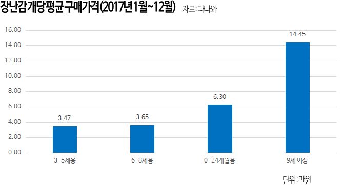 6-8세 아이들의 장난감 평균 가격이 3.65만원일 때,