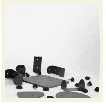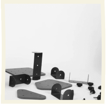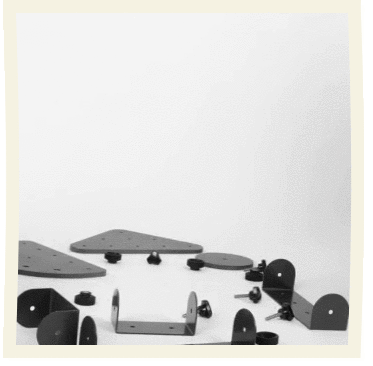 - 구성품: 반원 1개, 큰 원 2개, 작은 원 2개, 큰 삼각형 1개, 2p 철제 2개, 꺾임 철제 2개, 4p 철제 2개, 볼트와 너트 8개