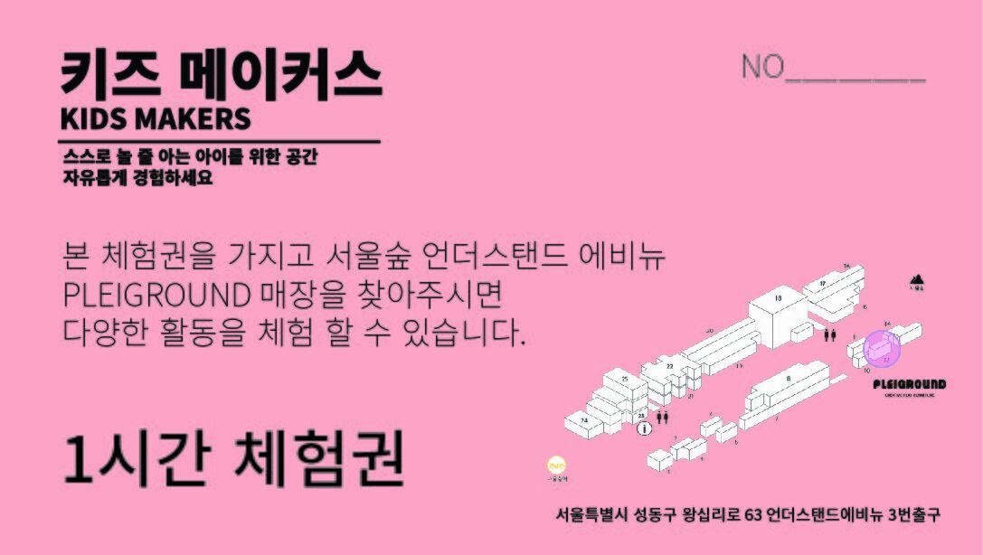 PLEIGROUND와 여기저기출판사의 모든 상품들(Toniture 포함)을 체험 할 수 있는 서울숲 매장의 1시간 체험권을 드립니다.